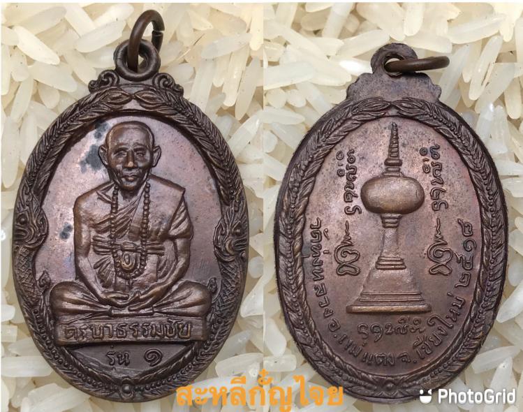 เหรียญรุ่นแรกครูบาธรรมชัย ธมฺมชโย วัดทุ่งหลวง อ.แม่แตง เชียงใหม่ ปี18 เนื้อทองแดง พิมพ์ลึก