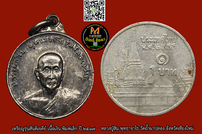 เหรียญเนื้อเงิน รุ่นสันติเจดีย์ พิมพ์เล็ก ปี 2517 หลวงปู๋สิม พุทธาจาโร วัดถ้ำผาปล่อง จ.เชียงใหม่ สภาพสวยๆ เล็กกระทัดรัดน่าบูชาและสะสม