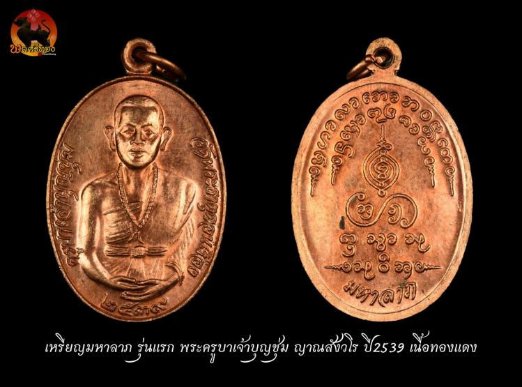 เหรียญมหาลาภ รุ่นแรก พระครูบาเจ้าบุญชุ่ม ญาณสังวโร ปี2539 เนื้อทองแดง ลูกศิษย์ขออนุญาตจัดสร้างรายได้รวมทุนสร้างทั้งหมดนำเงินเข้ามูลนิธิได้4ล้านบาท